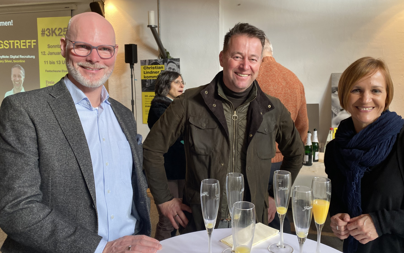 Bei Sekt, Orangensaft und kleinen Knabbereien begrüßte Ortsvorsitzender Andreas Bloching die Gäste und leitete in den dreistündigen Empfang ein. Die kurze Zeit, um den Wahlkampf für die vorgezogene Bundestagswahl zu organisieren, stelle alle Ortsverbände vor große Herausforderungen, betonte Bloching. Terminplanung, Materialbeschaffung, Wahlkampf: In Wehrheim ist die FDP bereits mittendrin. Noch vor Weihnachten wurden die Weichen gestellt. Mit einem Workshop zur Bundestagswahl starteten die Liberalen noch während der hessischen Weihnachtsferien in das neue Jahr. Die Veranstaltung am 10. Januar wurde vom Ortsverband organisiert und unter der Federführung von Wehrheims FDP-Ehrenvorsitzendem Harald Stenger durchgeführt. Ortsmitglied Dr. Florian Gerster moderierte. Gleich tags drauf zogen die Liberalen mit Vorstandsmitglied Ralf Baumann an der Spitze durch die Gemeinde, um an den offiziellen Info-Wänden erste Plakate der Liberalen zur Bundestagswahl zu kleben. Wiederum nur einen Tag später dann die Premiere des Wehrheimer Dreikönigstreffs.