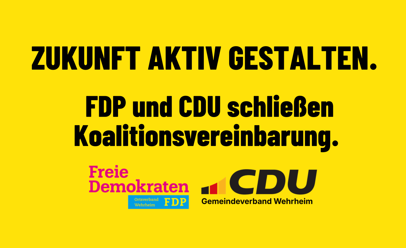 „Die sehr guten und konstruktiven Gespräche zwischen CDU und FDP sind schließlich in einer für Wehrheim richtungsweisenden Koalitionsvereinbarung gemündet, die eine stabile und verlässliche Grundlage für die kommenden Jahre bildet“, erklärt der CDU-Fraktionsvorsitzende Dr. Teja Müller.